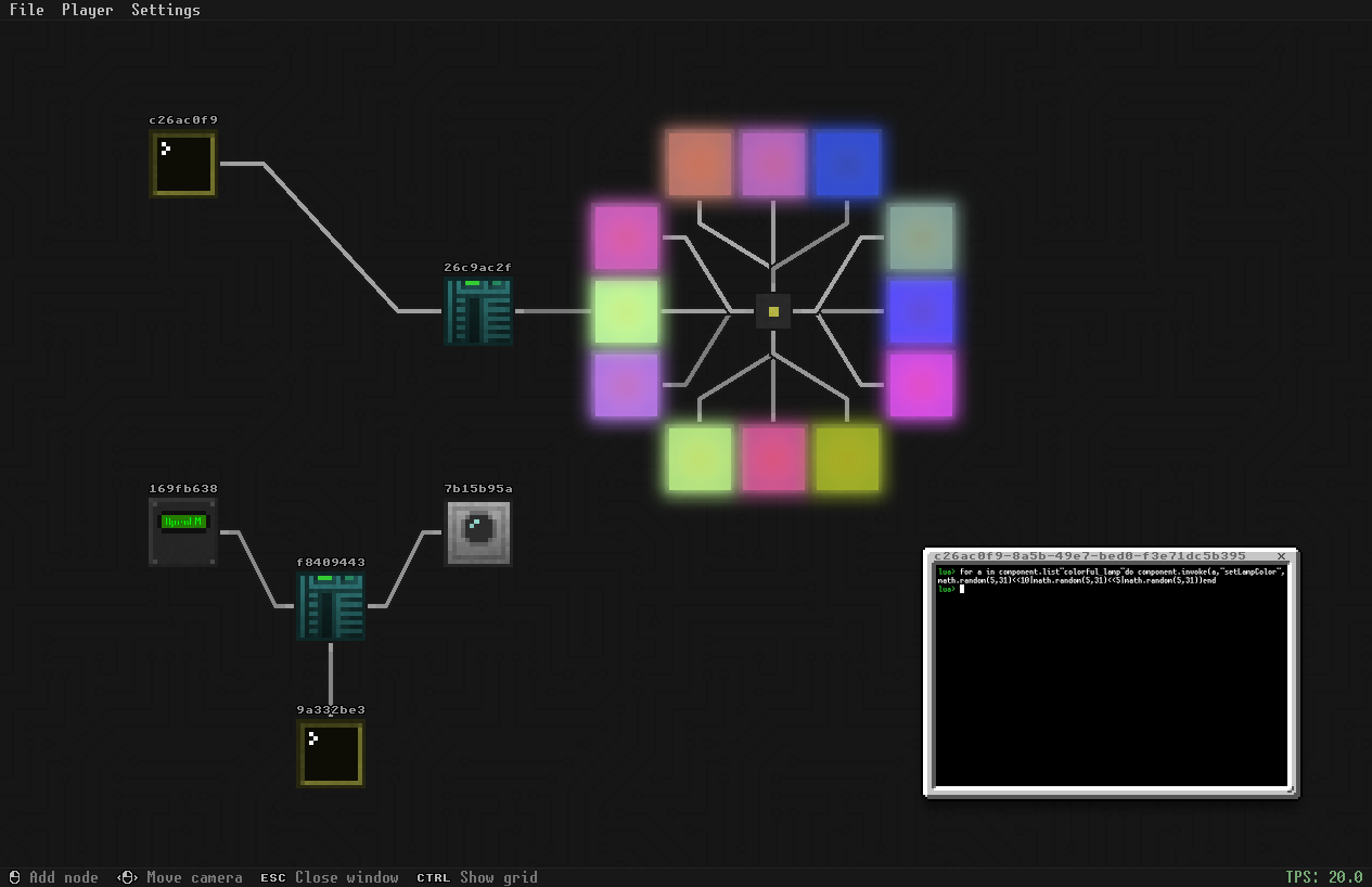 Many additional options are hidden in the context menus — try hitting the right mouse button on various things. For example, components will let you copy their address to the clipboard, and right-clicking on the TPS counter (on the bottom right) allows you to change the simulation speed.